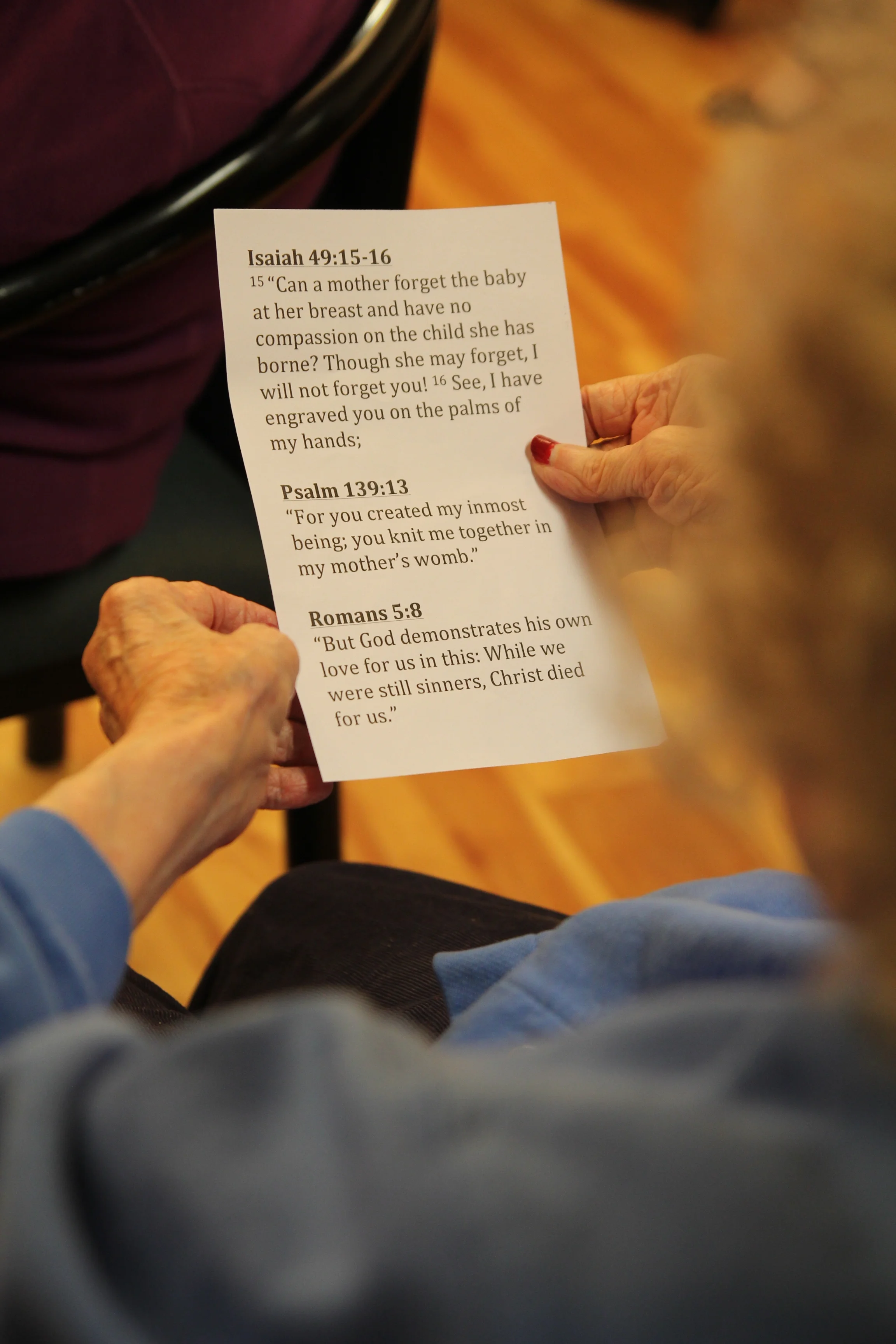 Bulletins with inserts of the Bible verses and hymns